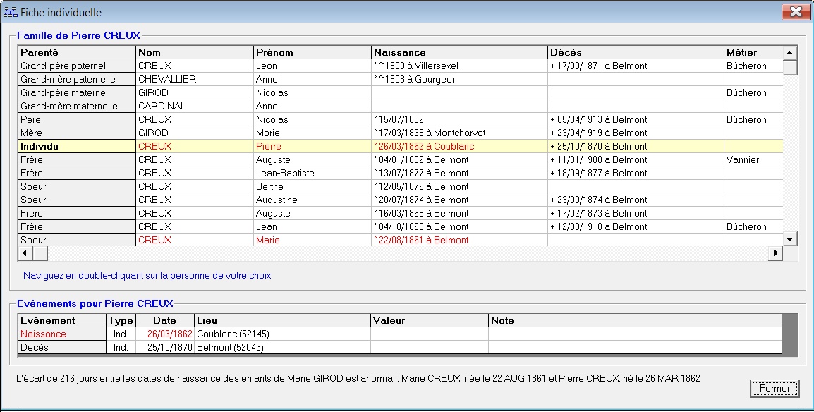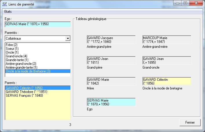 Permet de faire un contrôle visuel des liens de parentés d'un individu. |