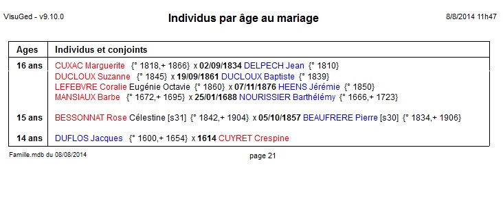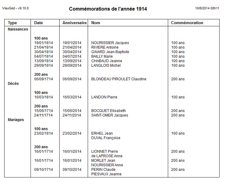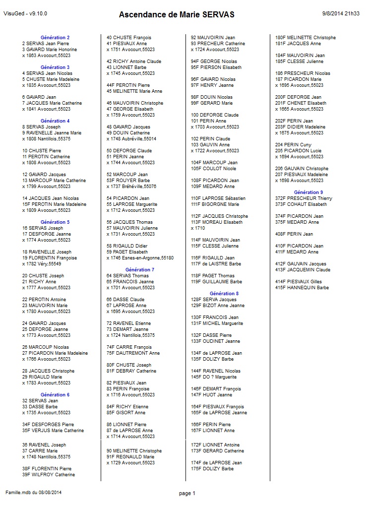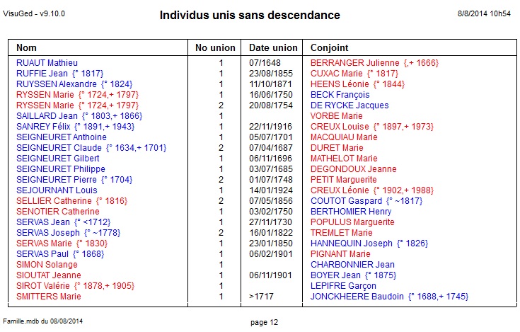 du fichier Gedcom avec l'établissement d'un rapport contenant